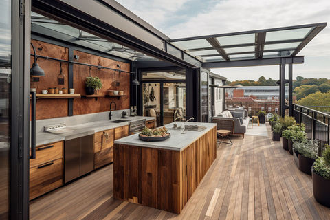 Pour une cuisine extérieure en Bretagne, utilisez des matériaux résistants aux intempéries comme la pierre, le bois traité et l'acier inoxydable. Optez pour des équipements adaptés au climat marin.